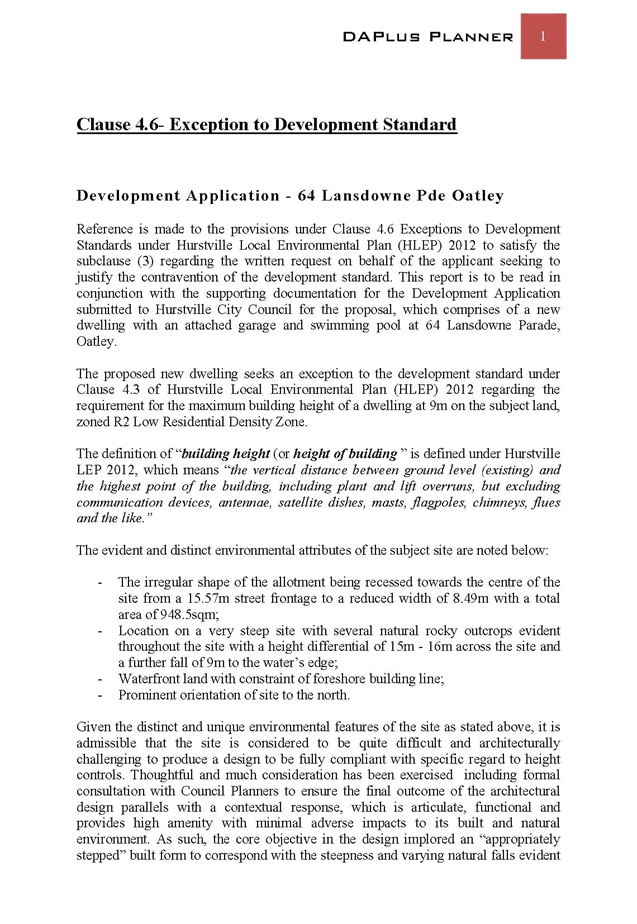 CCL063-16 64 Lansdowne Pde Oatley - Demolition of Existing and Construction of Multi-level Single Dwelling (DA2015/0307)