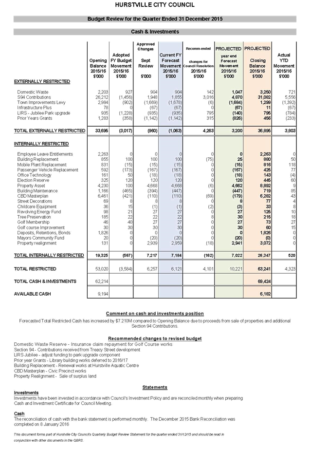 CCL067-16 Quarterly Financial Review - December 2015 (15/878)