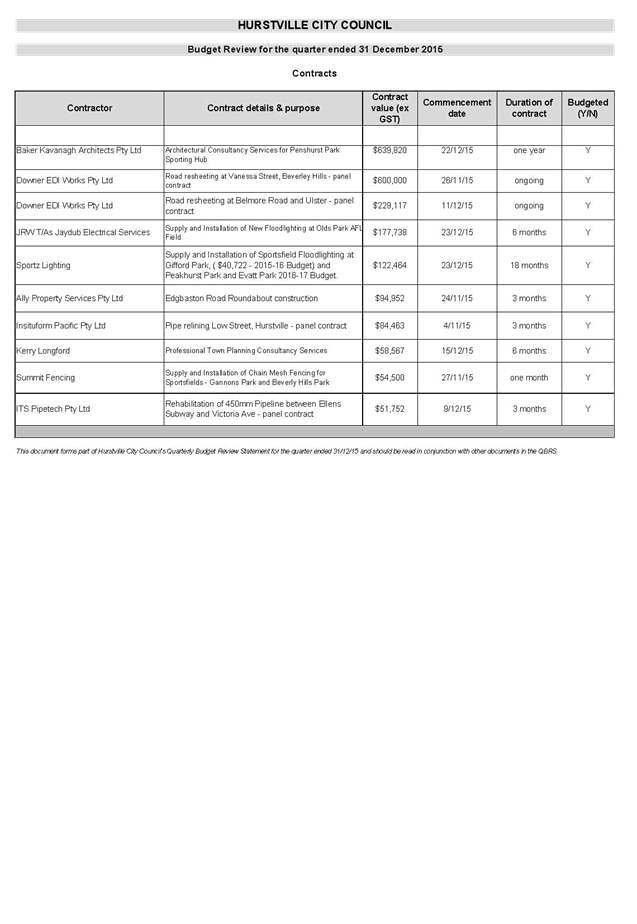 (Report by Manager Contracts, Mrs S Geadah)