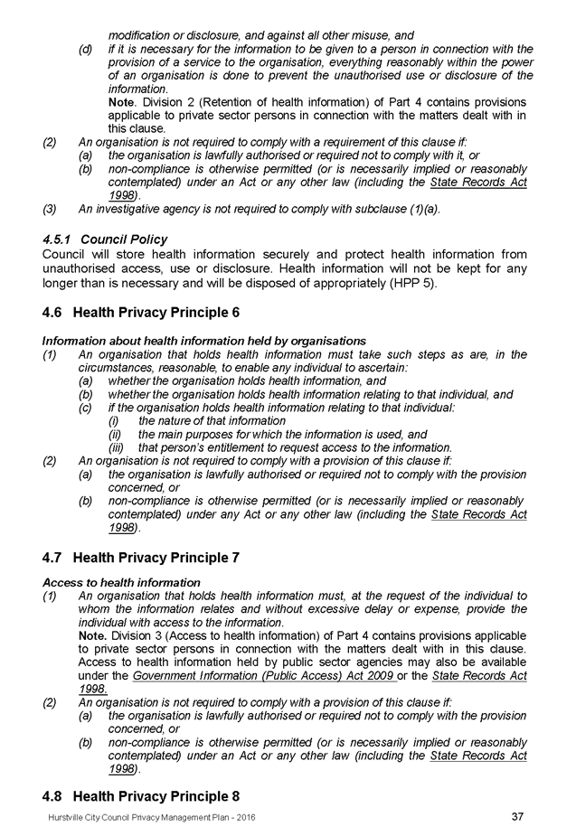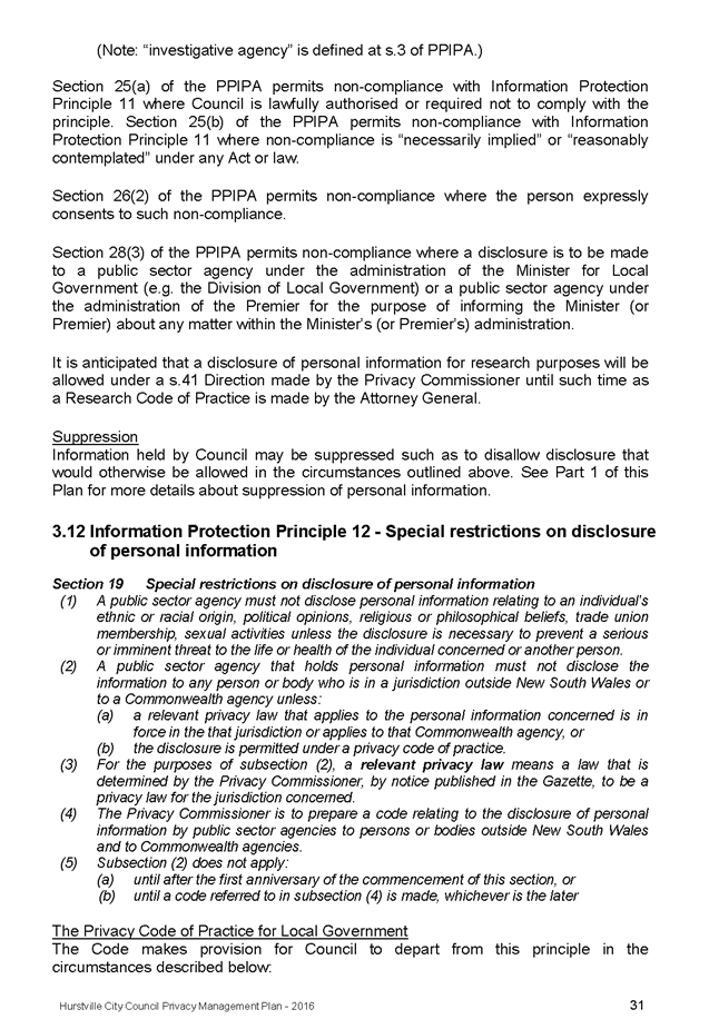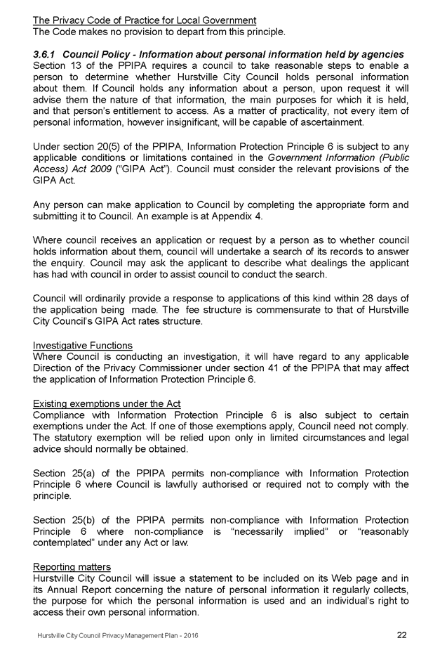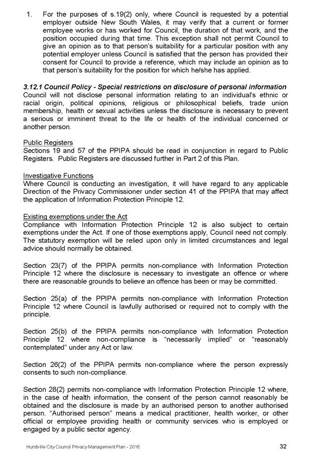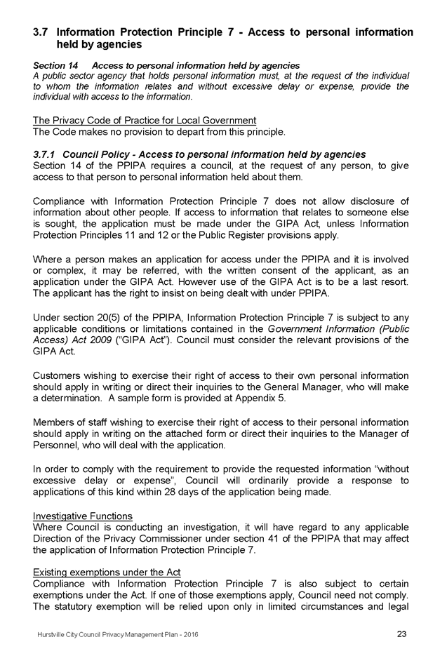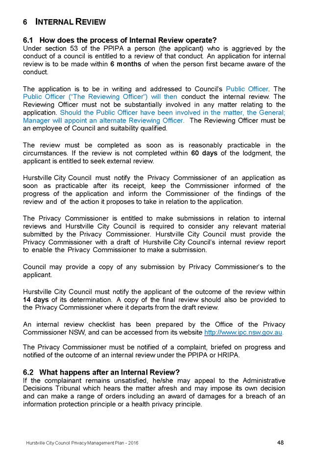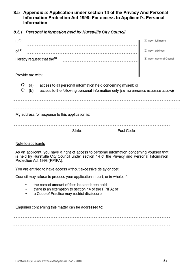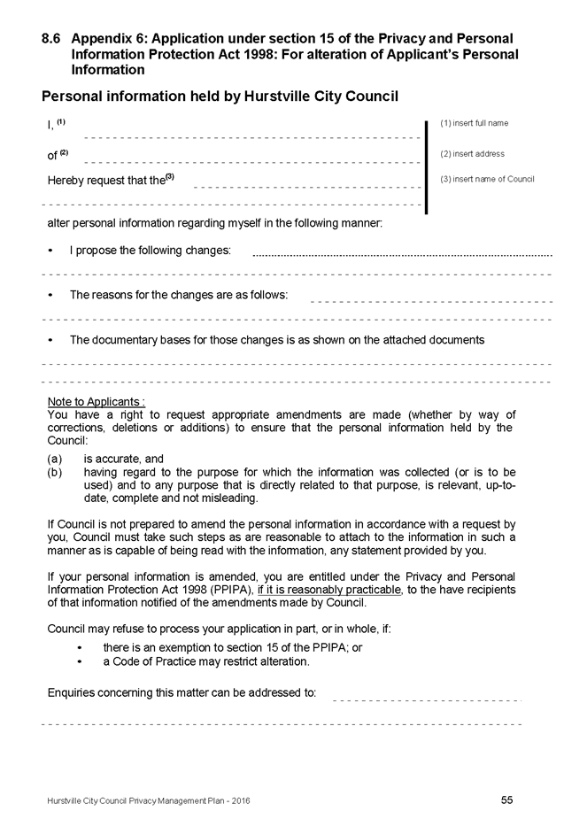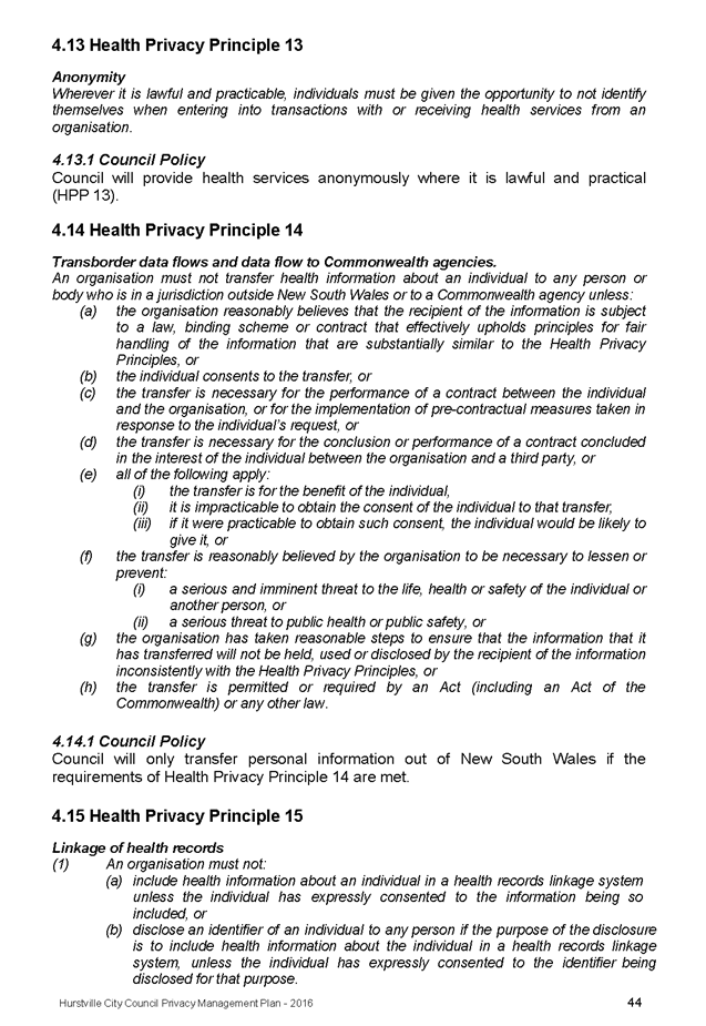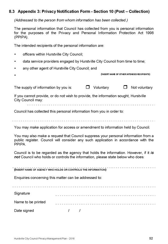 In April 2013, Hurstville City Council adopted an amended Privacy Management Plan to reflect the Revised Model Plan released by the Office of Local Government that same year.