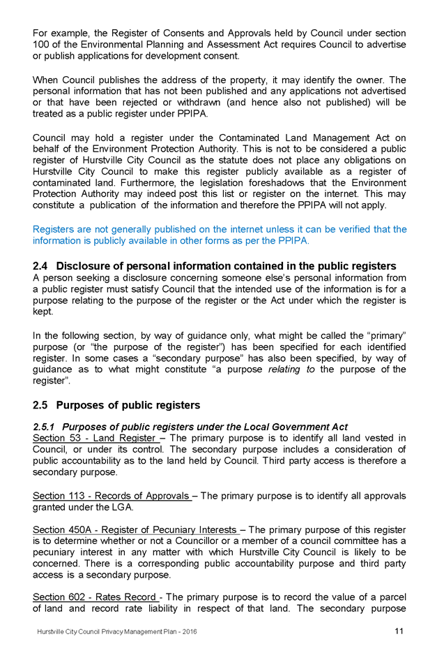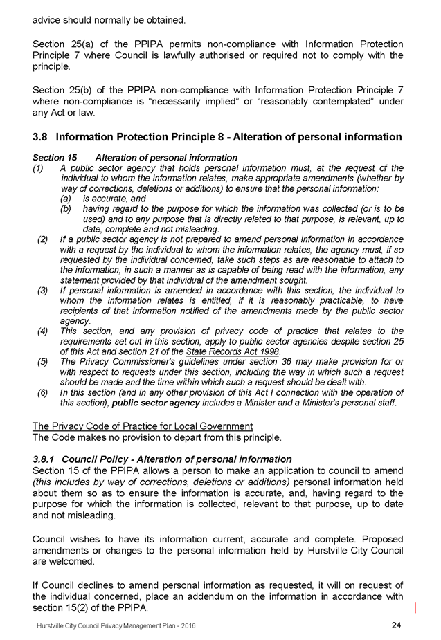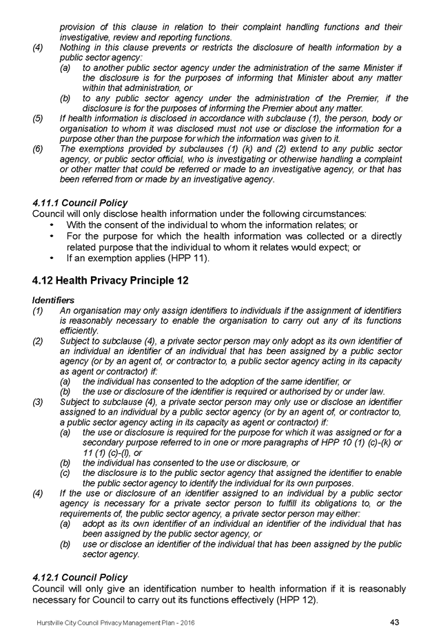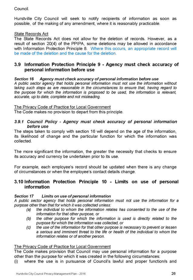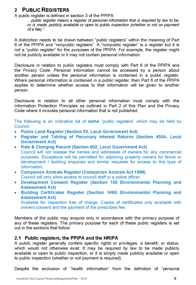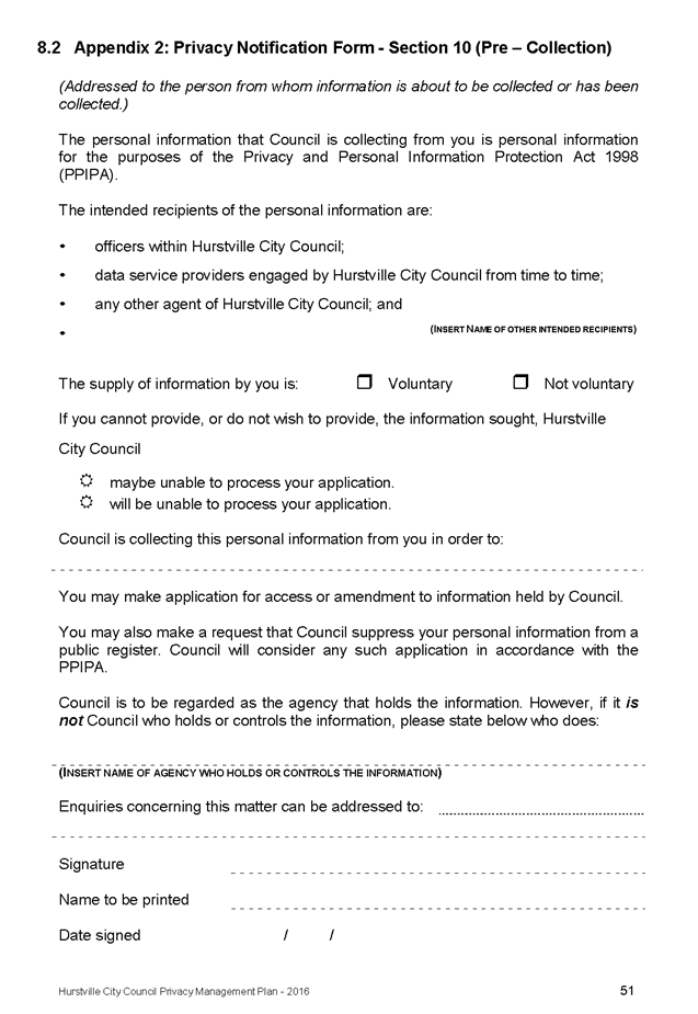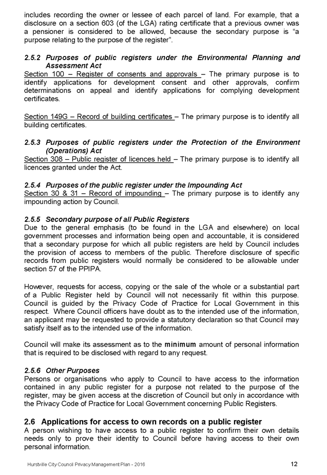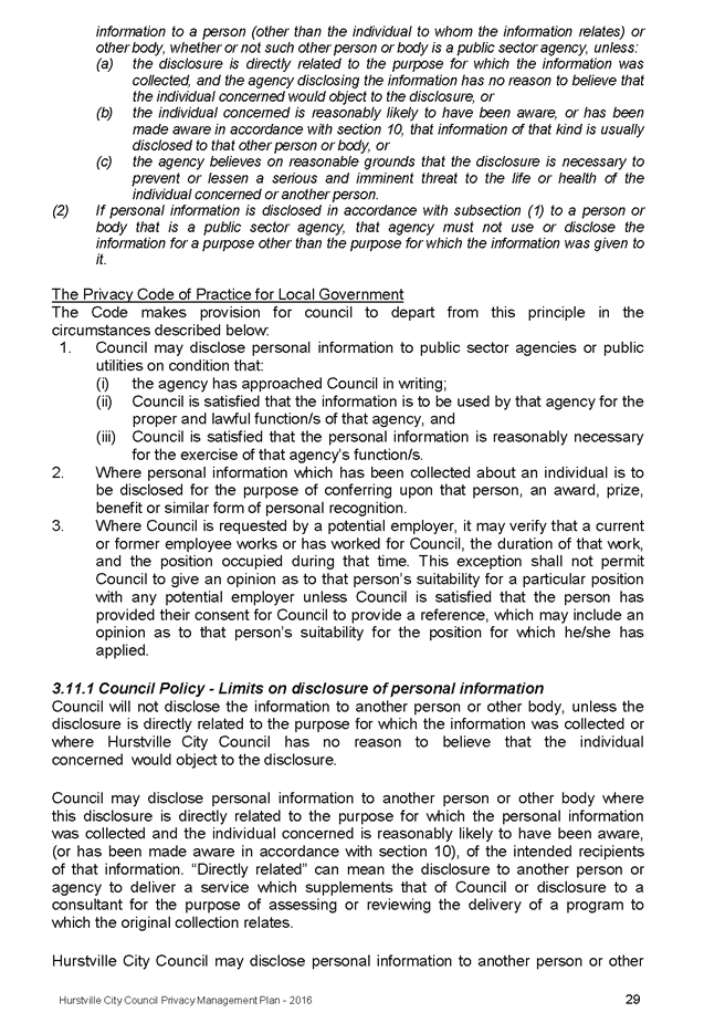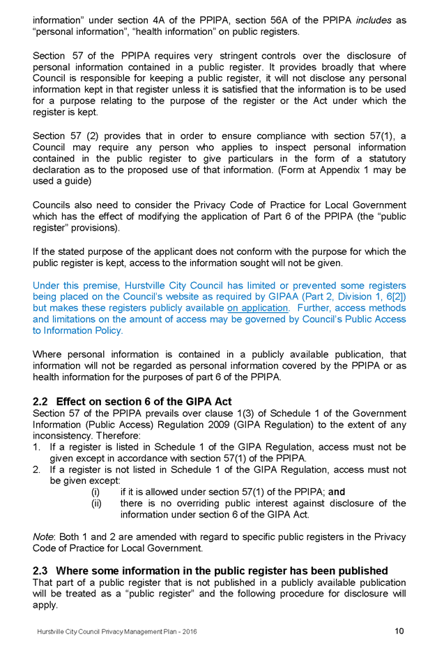In April 2013, Hurstville City Council adopted an amended Privacy Management Plan to reflect the Revised Model Plan released by the Office of Local Government that same year.