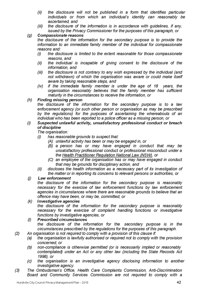 An additional clause has been added to specify the provision of information to other agencies (for example Police NSW or State Government departments). |