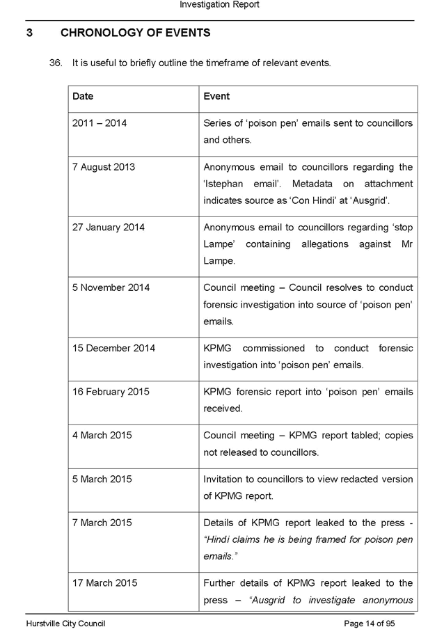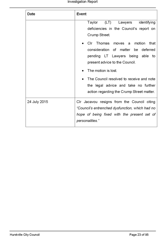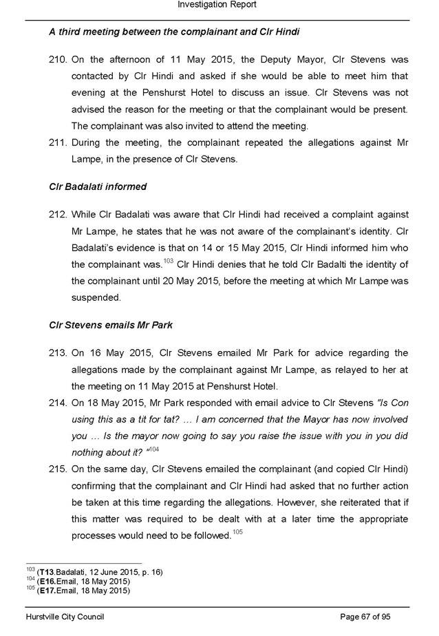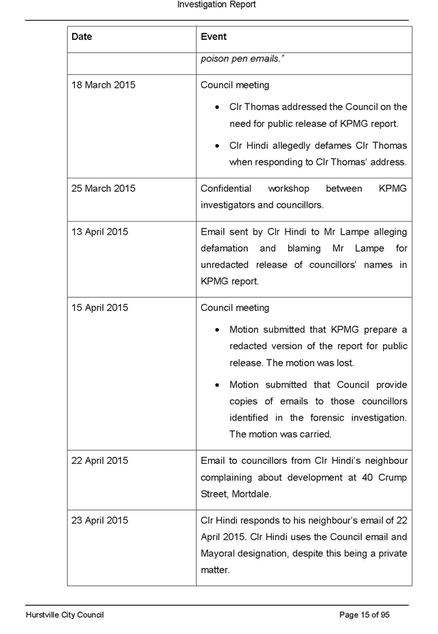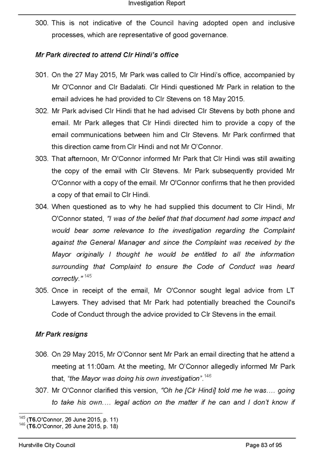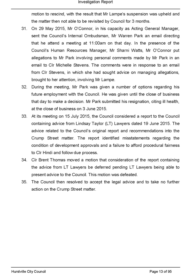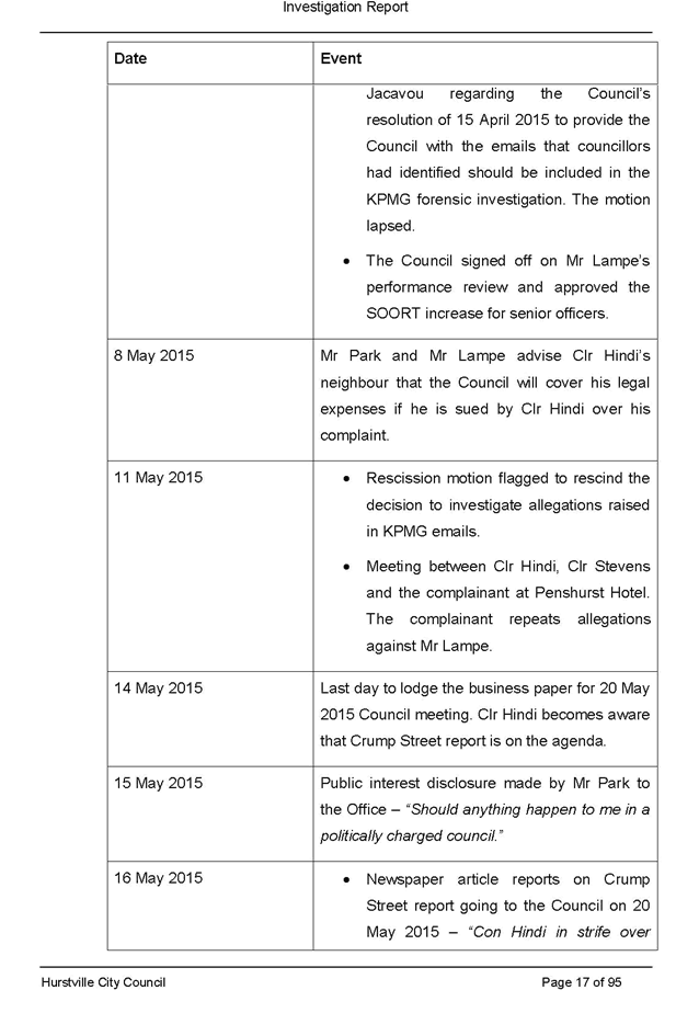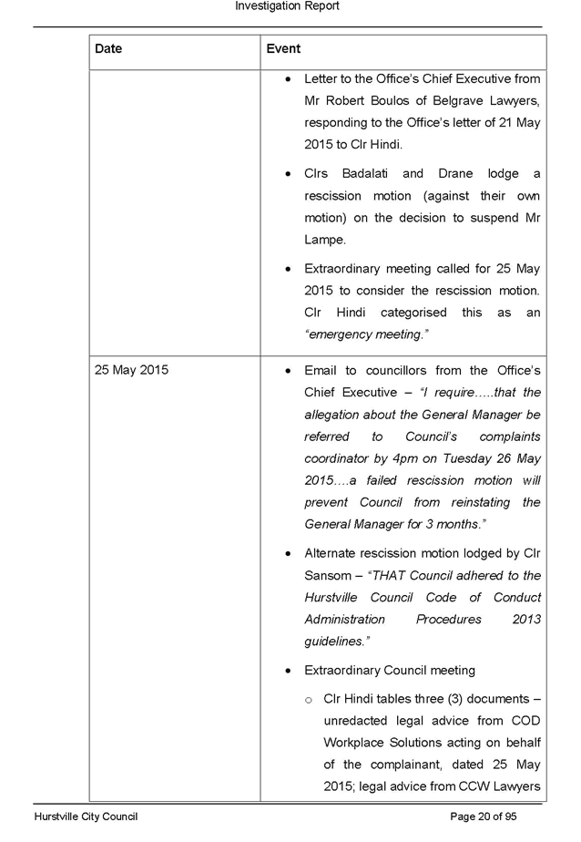 On 29 May 2015 the Council’s Mayor and Acting General Manager were provided with formal notification of the investigation.