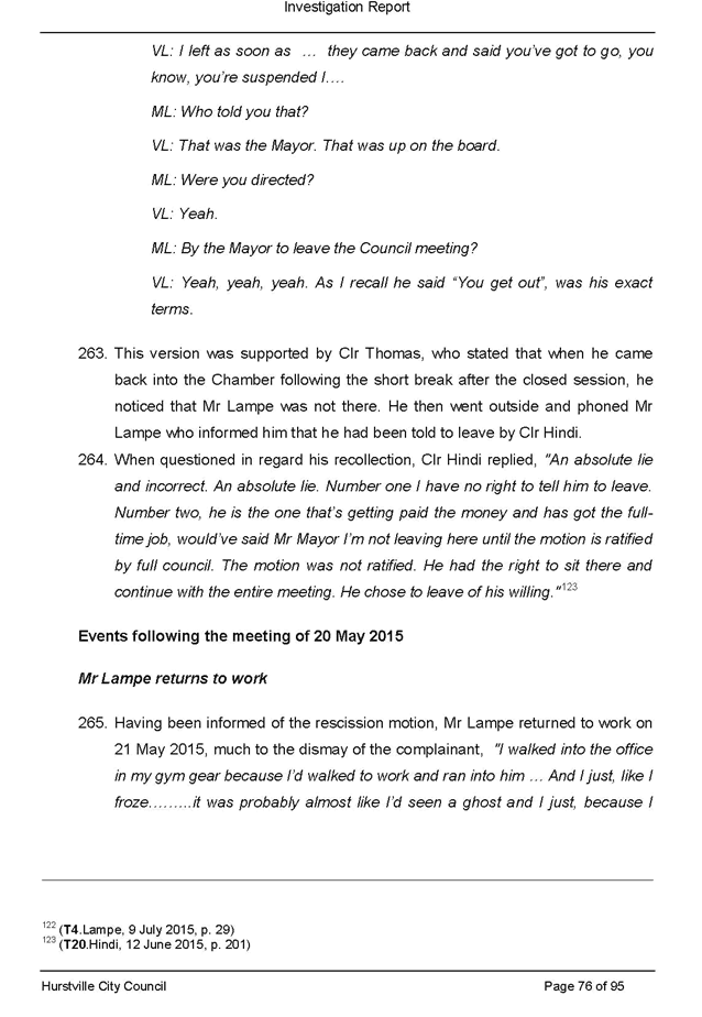 2. THAT the Council immediately revoke Mr Lampe’s suspension and arrange for his return to work as General Manager.