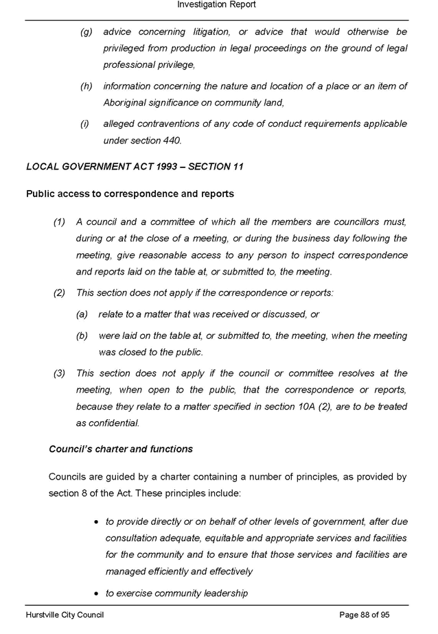 1. The governance of the Hurstville City Council including: